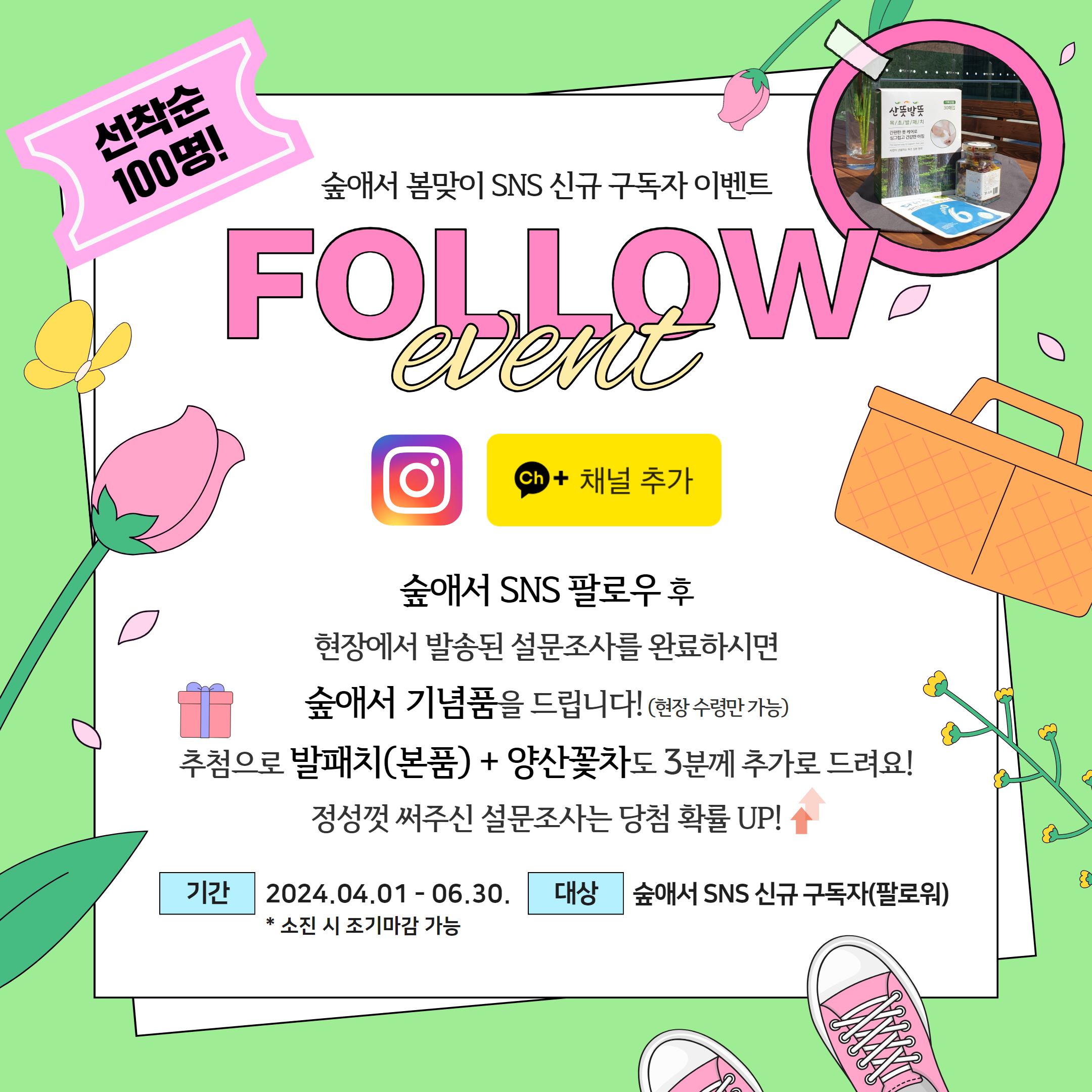 안녕하세요~ 숲애서입니다! 2024년 봄을 맞이해서 SNS 신규 구독자 이벤트를 진행합니다!