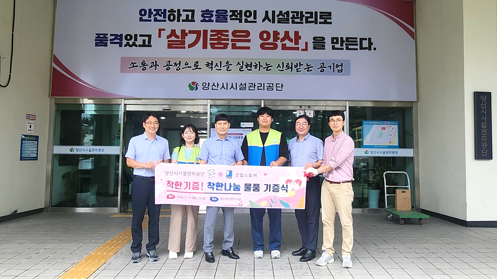 양산시시설관리공단(이사장 박성관)이 6월 2주간 「착한기증, 착한나눔」캠페인을 추진하여 굿윌스토어 밀알창원점(밀알복지재단)에 총363만원 규모의 기증을 실시하였습니다.