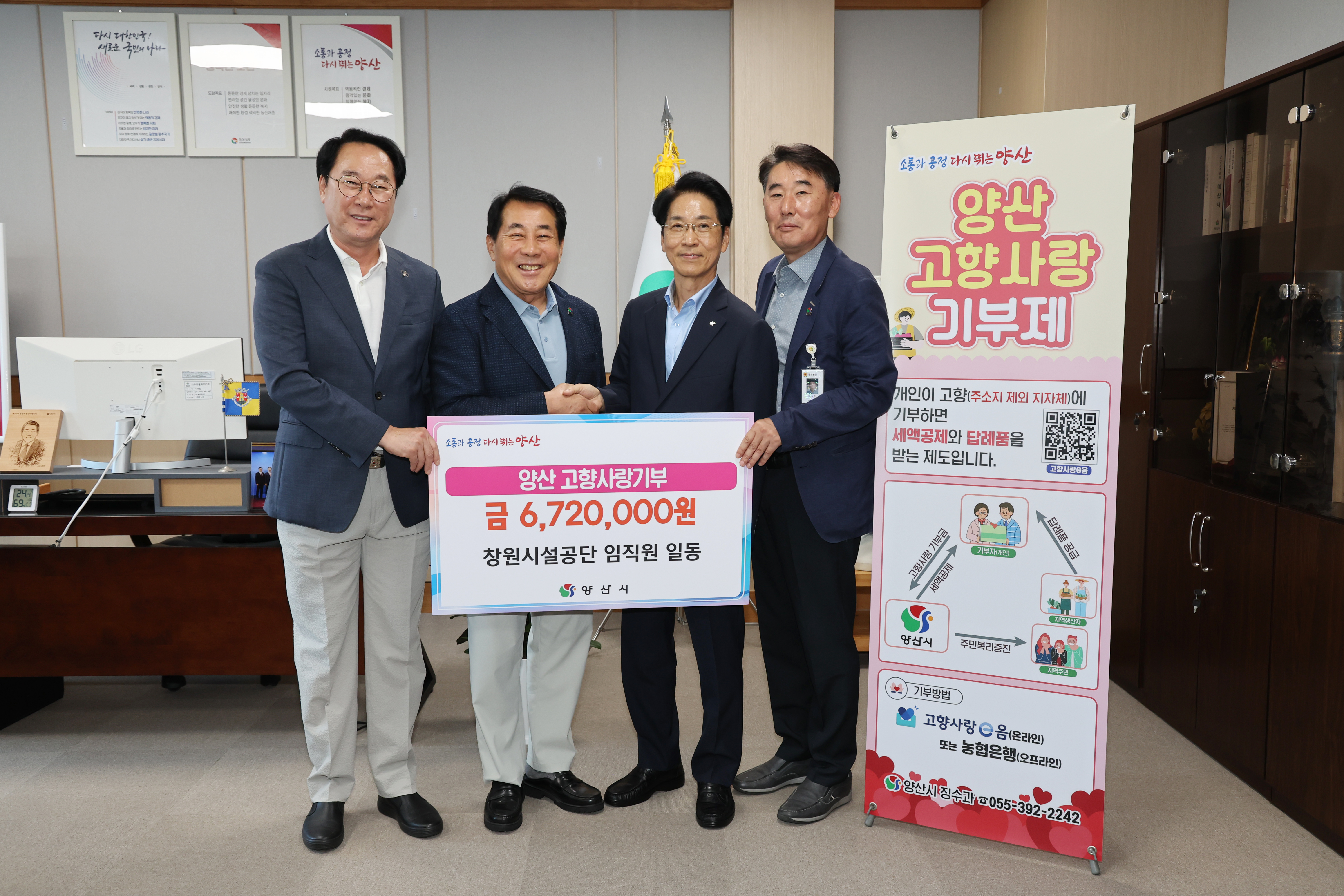 경남 창원시설공단은 26일 양산시에 고향사랑 기부금 672만원을 기탁했다.