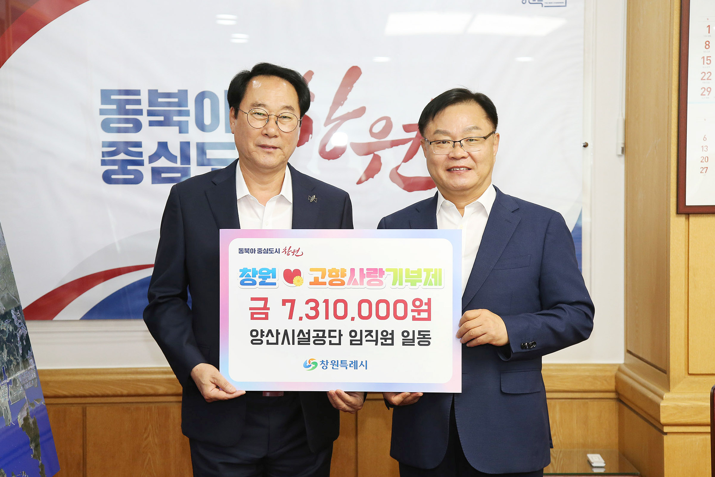 양산시시설관리공단은 지난 5일 창원시에 방문하여 '24년 고향사랑기부제 기부금 전달식을 가졌다.