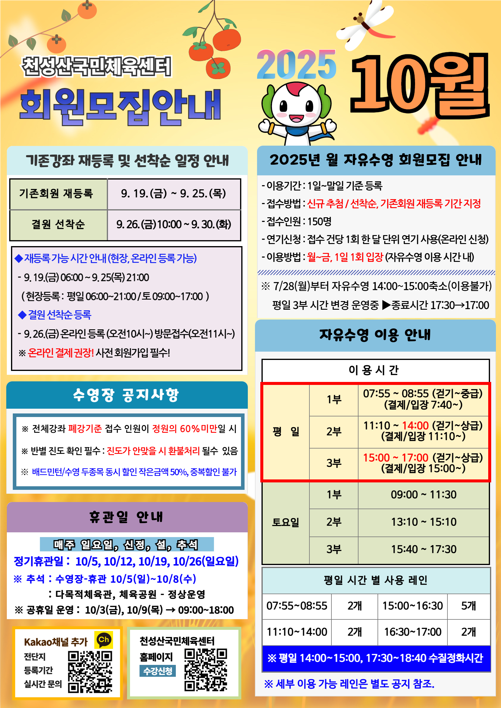 - 추석휴관일 : 10/5(일)~10/8(수)