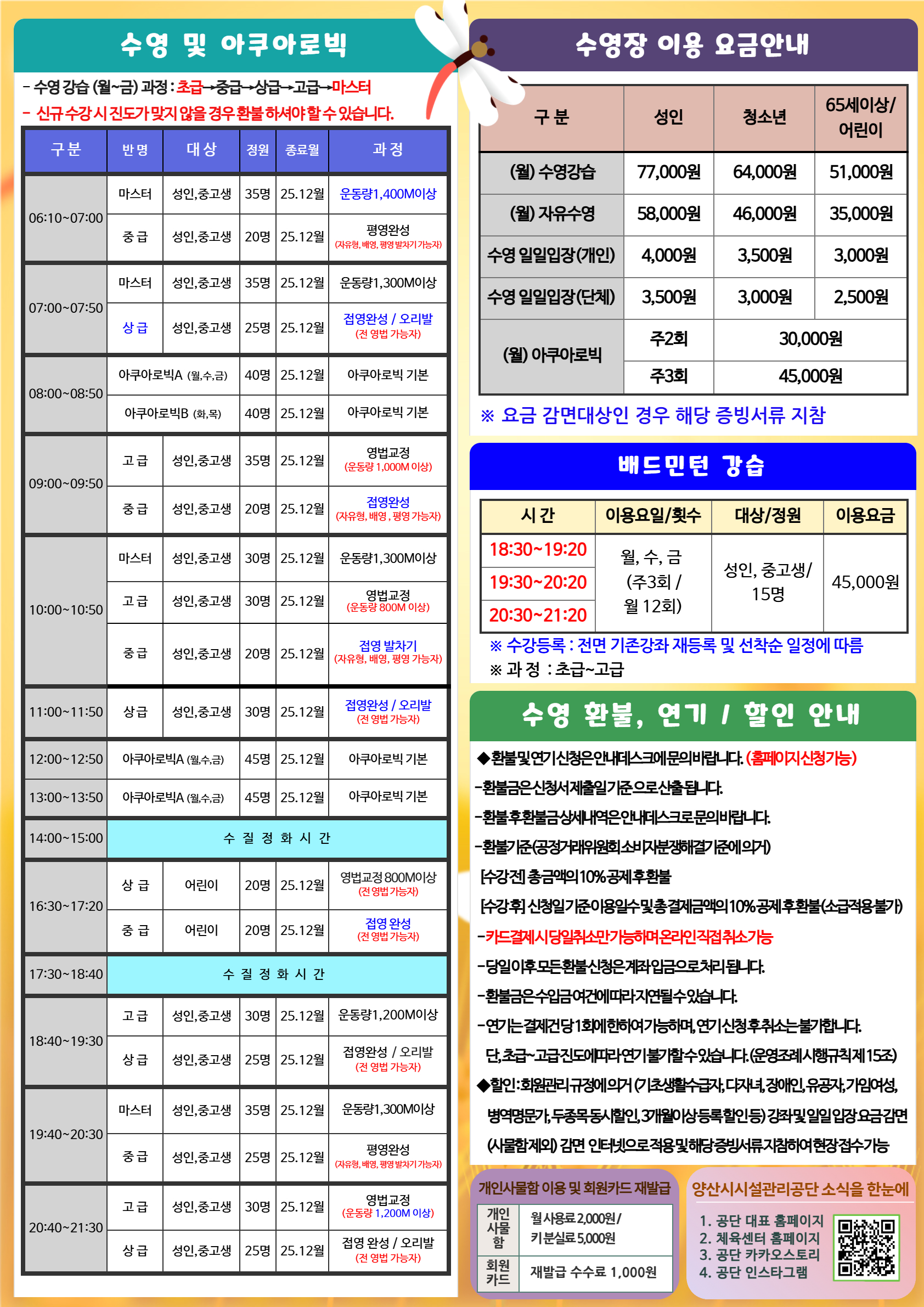 3. 토요일 자유수영 회원 50% 할인 해택 종료(1/4부터)