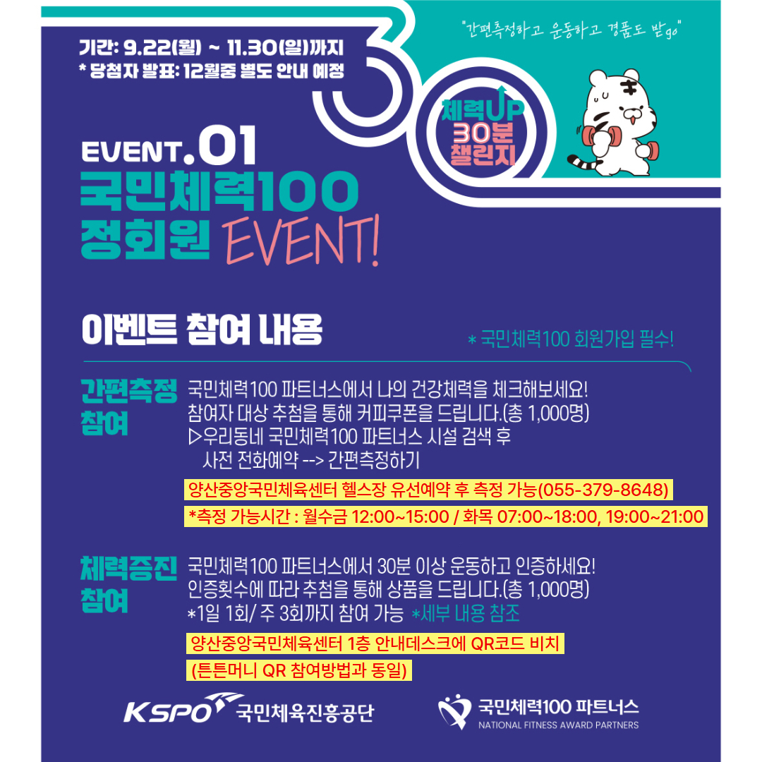 국민체육진흥공단 국민체력100 파트너스 정회원 이벤트 안내드립니다!