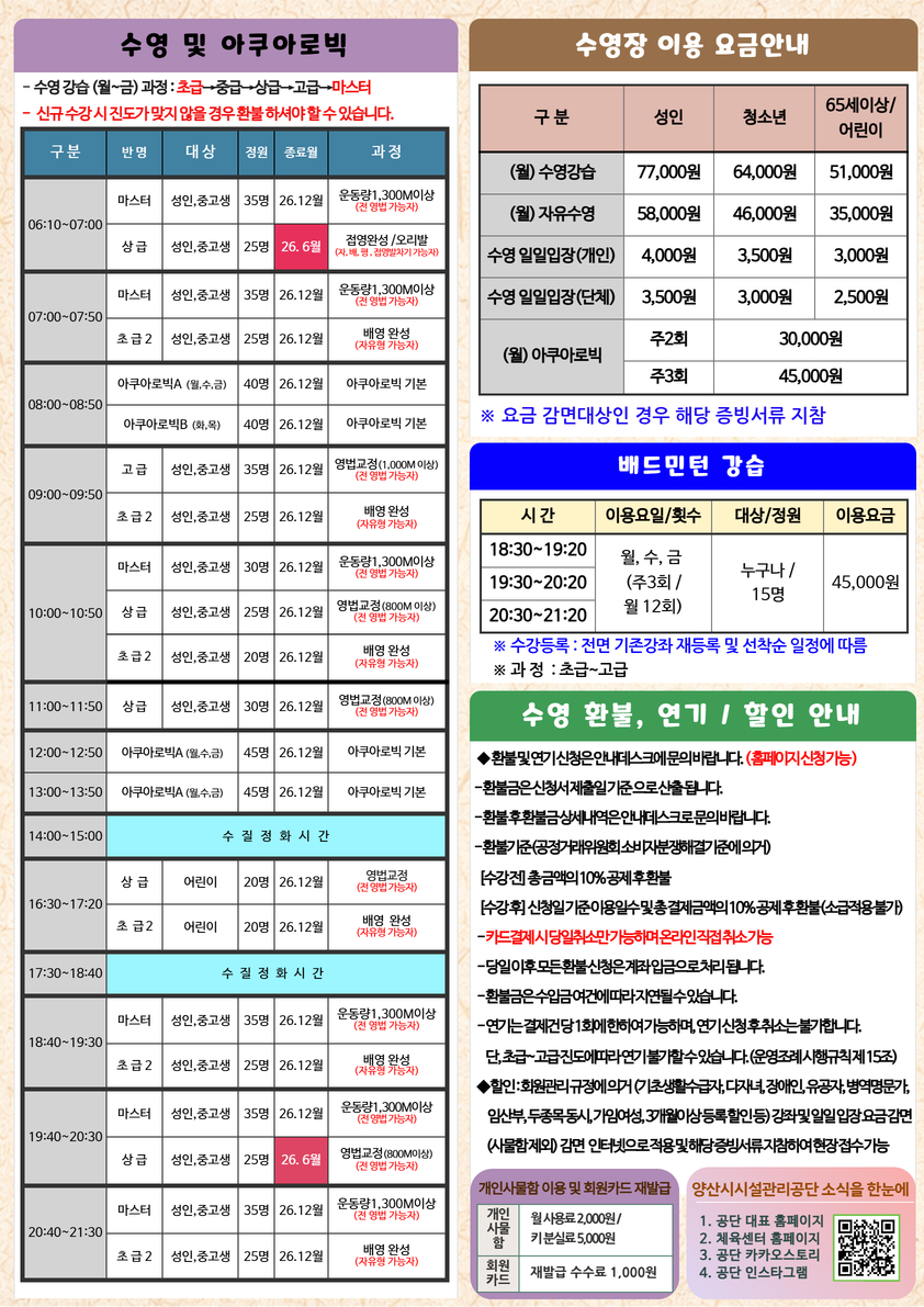 ※ 수영조 점검시간 운영 시행 25.12.1.(월)