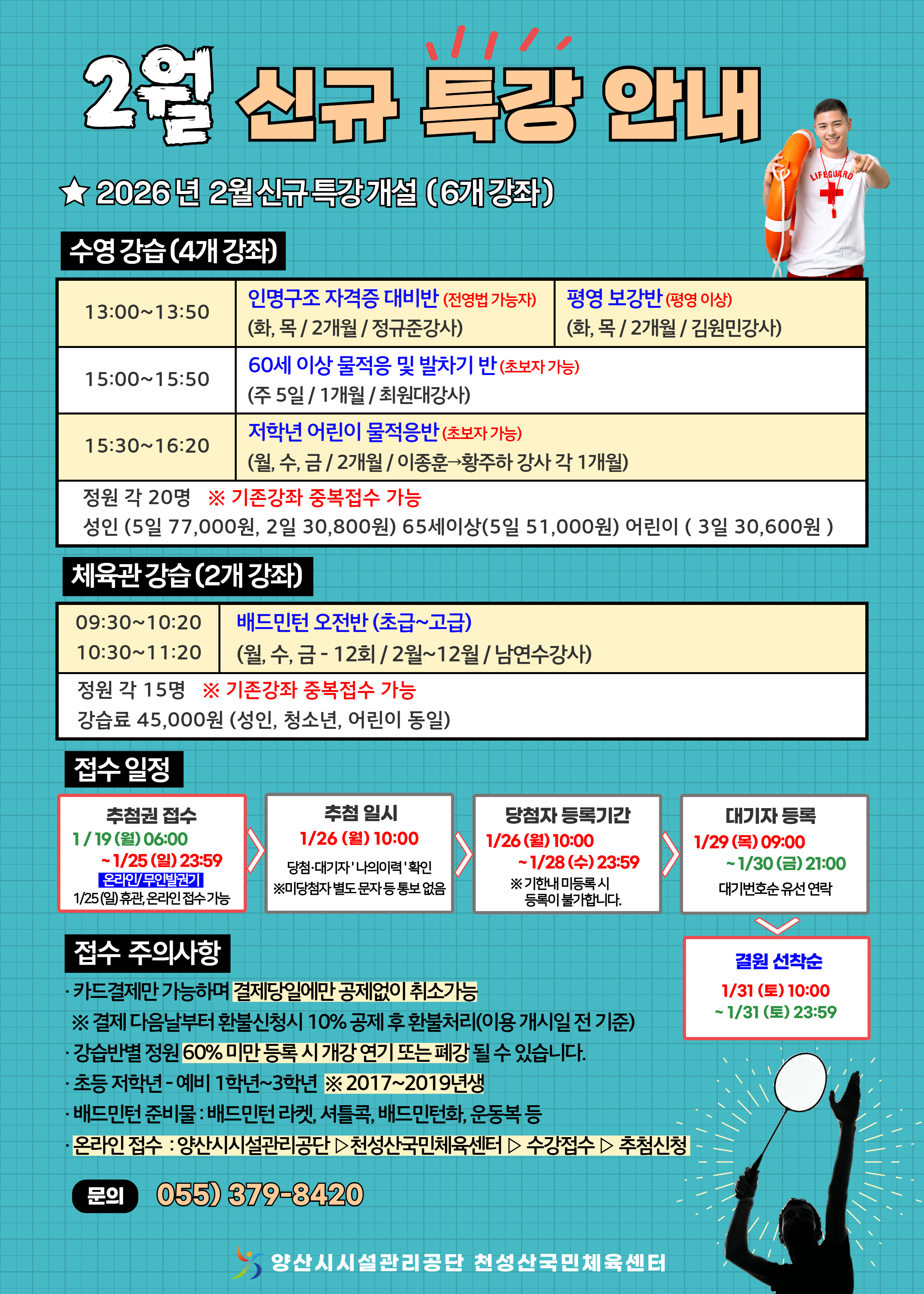 ★센터 내부 사정에 따라 강습 일정은 변경 될 수 있습니다.