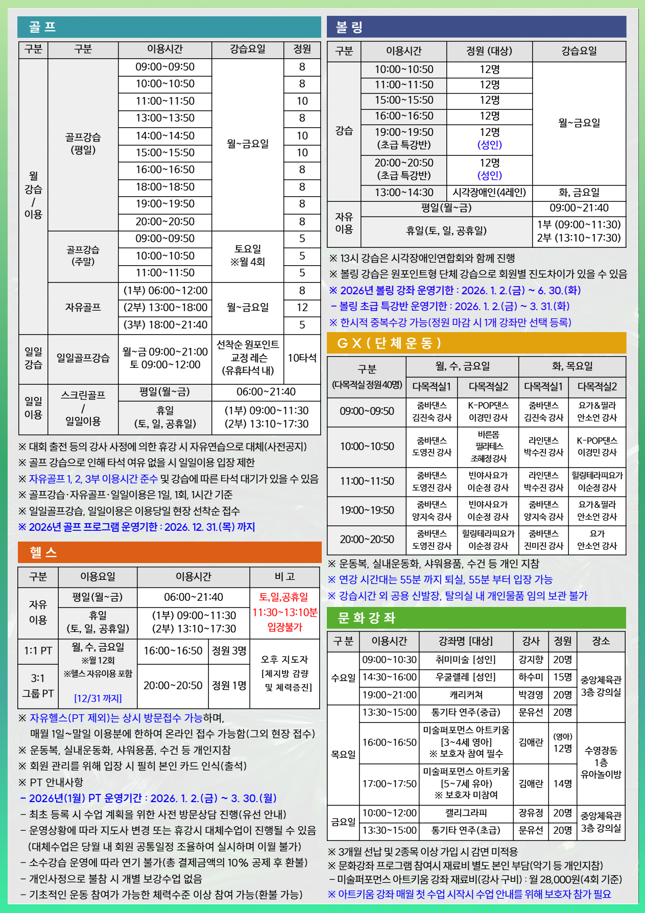 2026년 2월 회원모집 일정 및 정기휴관일 안내드립니다^^