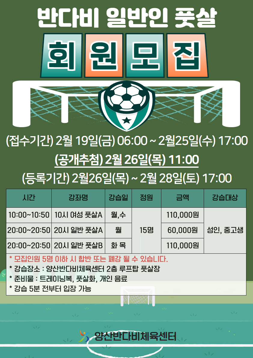 ※ 강습장소 : 양산반다비체육센터 2층 루프탑 풋살장