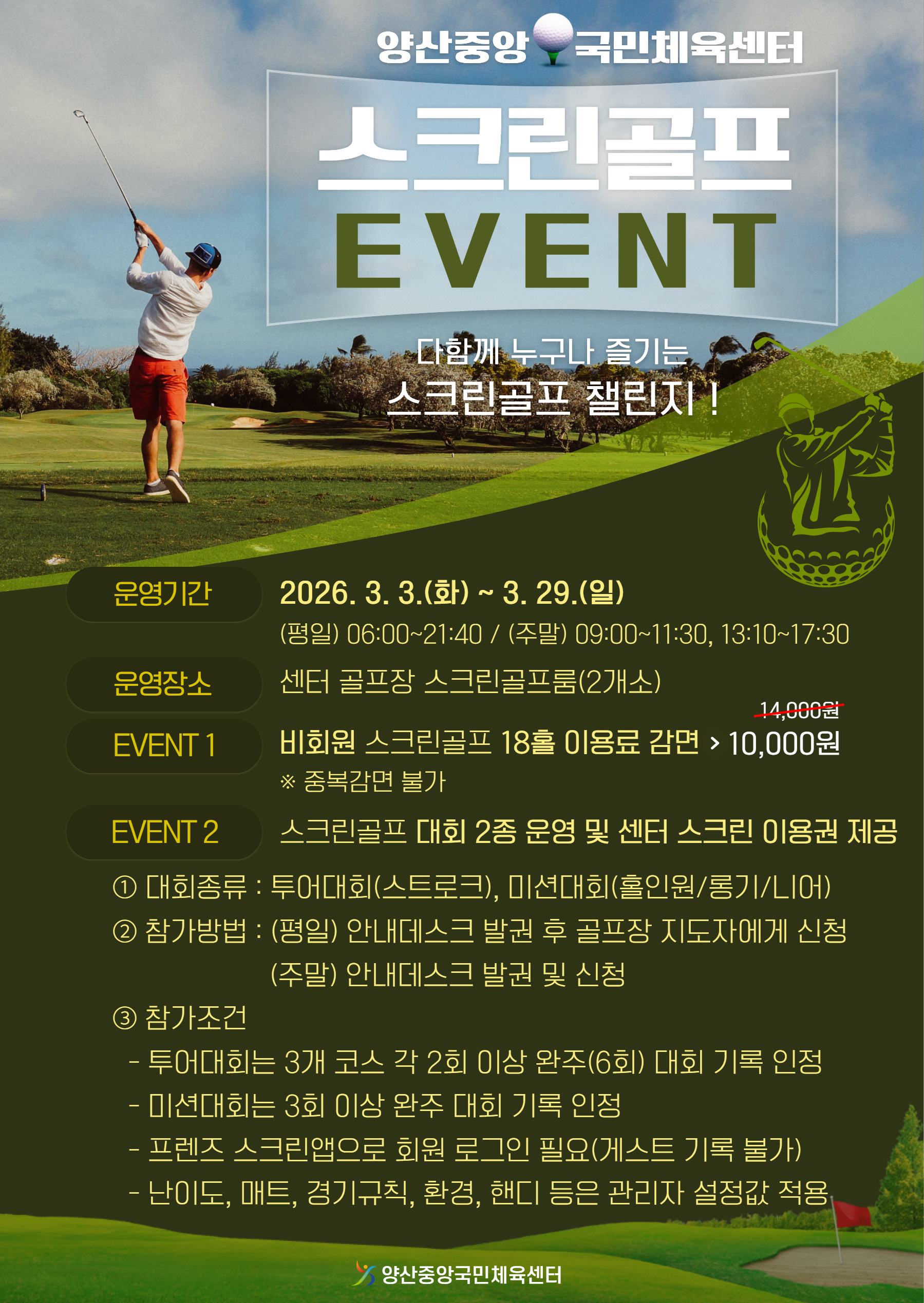 1) EVENT 1 : 비회원 대상 스크린골프 18홀 이용료 감면(14,000 → 10,000원)