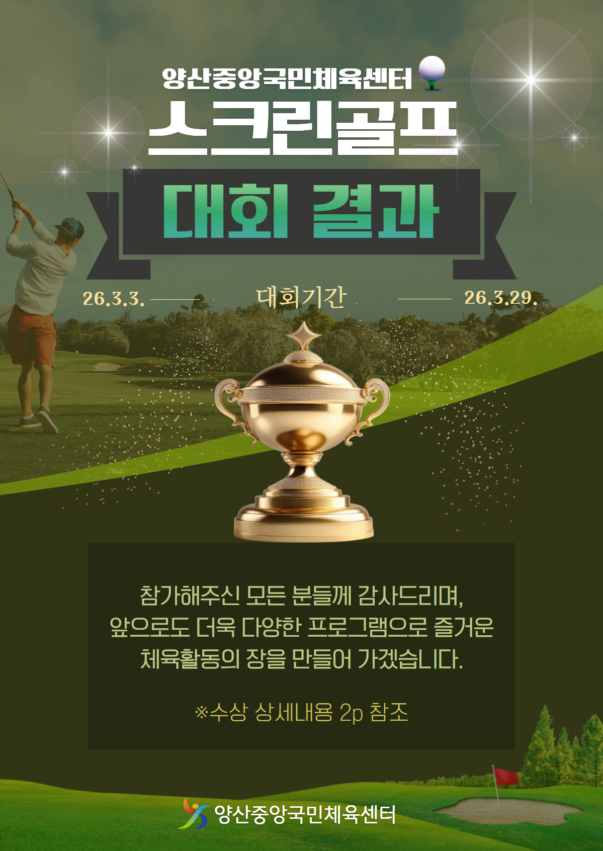 2026 양산중앙국민체육센터 스크린골프대회 결과 안내