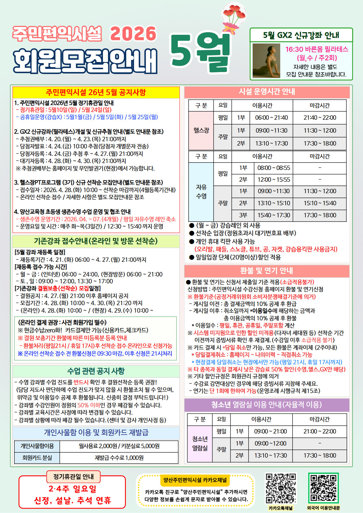 자세한 내용은 2026년 5월 전단지 및 안내문 참조 바랍니다.
