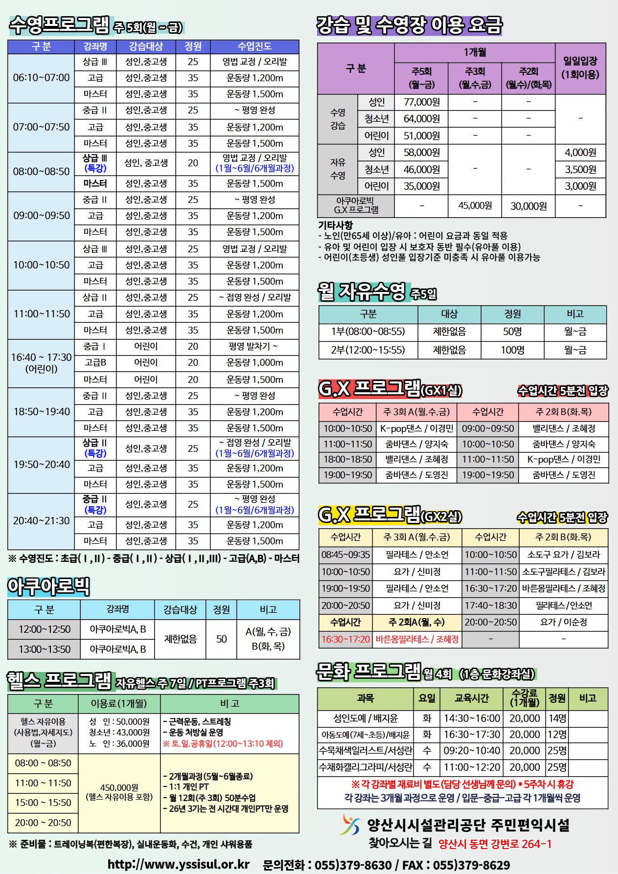 - 공휴일 운영(강습X) : 5월 1일(금) / 5월 5일(화) / 5월 25일(월)