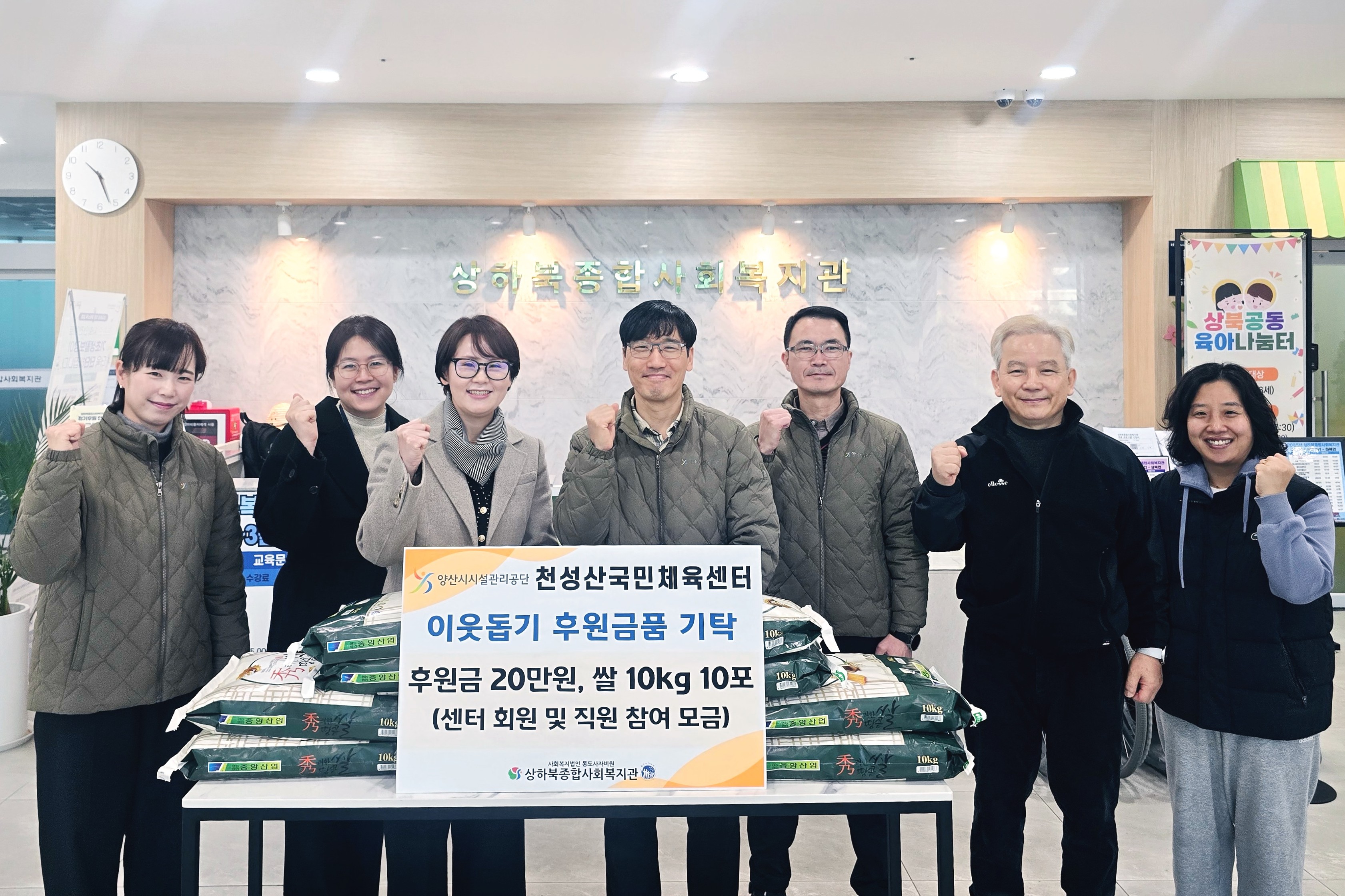 천성산국민체육센터 관계자는 “센터 회원들과 임직원의 자발적인 참여로 이뤄진 이번 모금 활동은 지역사회와 함께하는 공공기관의 책임과 가치를 되새기는 계기가 됐다”며 “앞으로도 지역사회에 온기를 전할 수 있는 나눔 활동을 지속해 나가겠다”고 말했다.