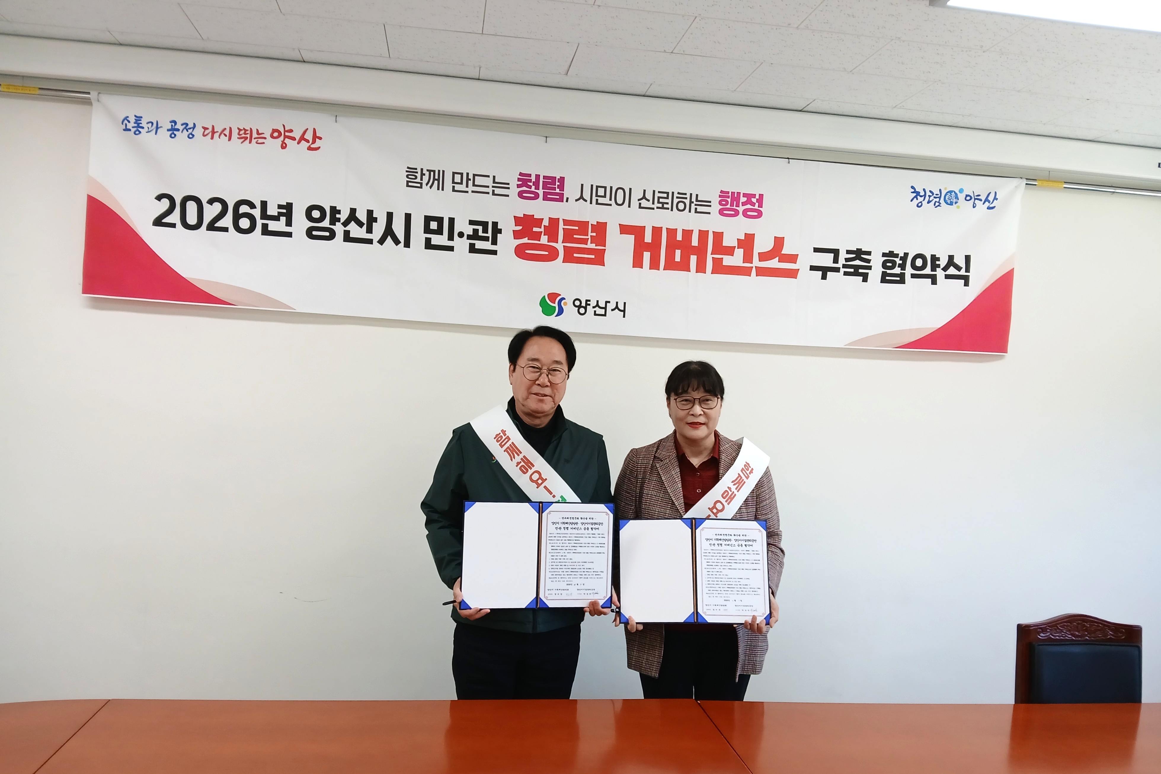 양산시시설관리공단(이사장 박성관)은 지난 7일 공단본부 소회의실에서 양산시 기획예산담당관실과 ‘2026년 청렴 거버넌스 구축을 위한 업무협약’을 체결했다고 밝혔다.