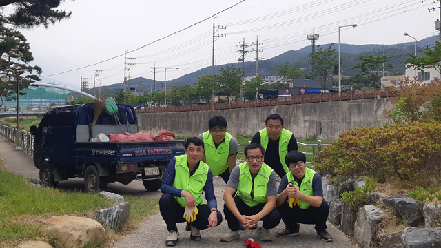 지난 11일에는 유산매립장팀에서 장마철 집중 호우에 따른 하천 범람을 대비하여 유산·어곡 인근 공단 지역 내 100kg 가량의 생활폐기물을 수거하여 주변 거주민의 안전과 환경개선에 기여하고자 하였다.