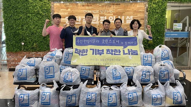 지난 10일 주민편익시설팀은 밀알복지재단 굿윌스토어(창원점)과 ‘착한 기증, 착한 나눔 캠페인’을 진행하였다. 양산주민편익시설 이용시민이 기부한 물품으로 장애 근로인 약 1명의 급여지원과 온실가스 777kg 절감(30년생 소나무 117그루 식재효과), 물 사용 999,000L 절감의 효과가 발생하여 그 의미를 더하였다.
