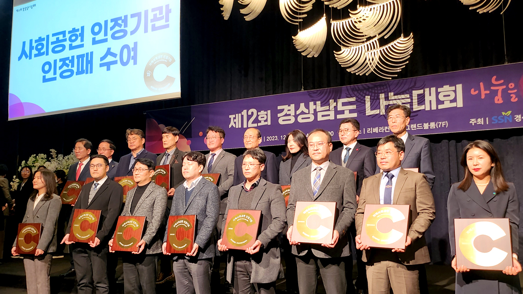 - 지난 1일, 경상남도사회복지센터 제12회 경상남도 나눔대회서 인정패 수여 -