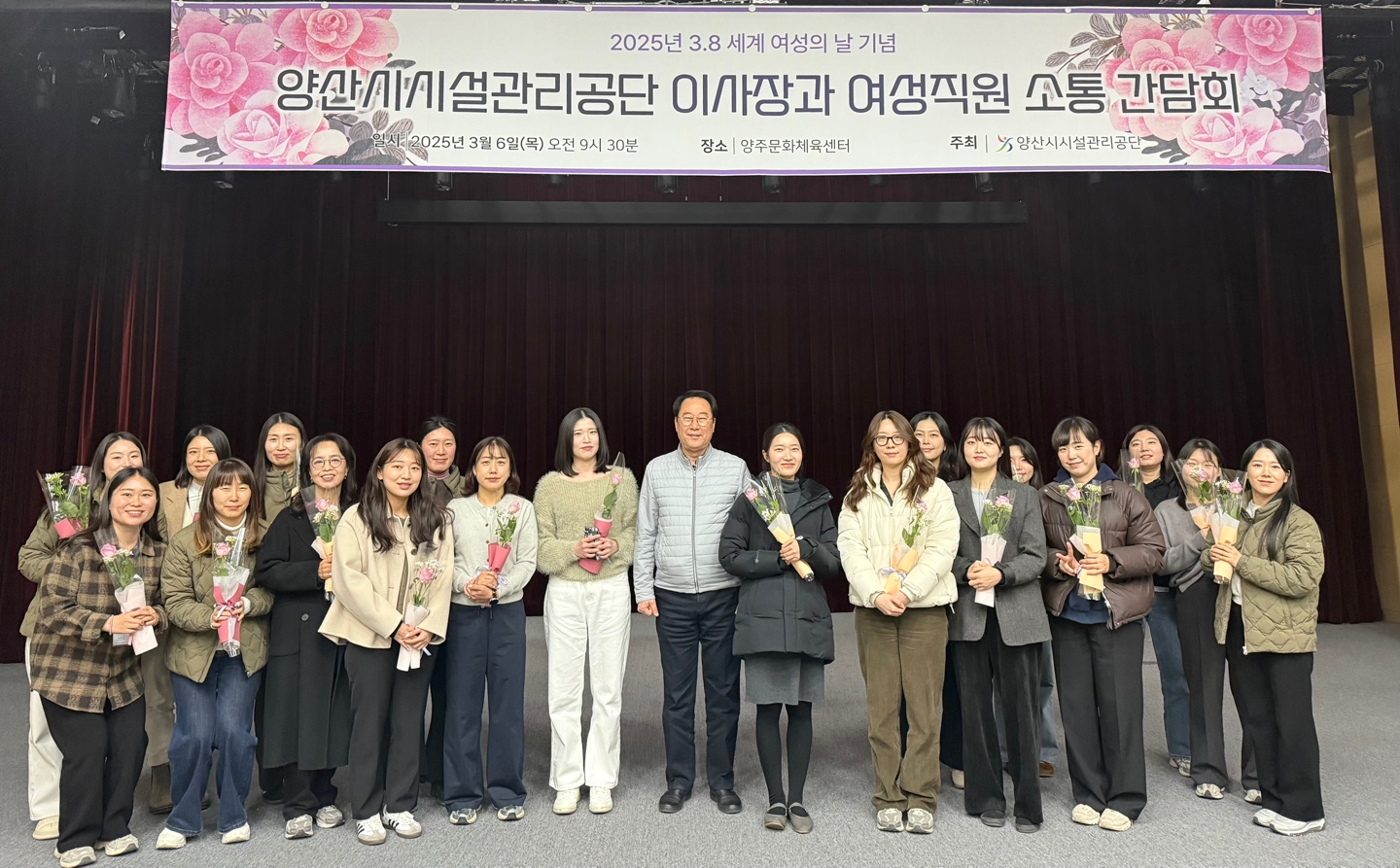 양산시시설관리공단(이사장 박성관)은 지난 6일 ‘세계 여성의 날’을 맞아 양주문화체육센터 공연장에서 여성 직원 20명과 함께 이사장 소통 간담회를 개최했다고 밝혔다.