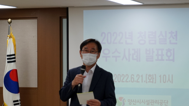 양산시시설관리공단(이사장 정순성)은 건강학고 투명한 윤리경영을 위한 2022년 청렴실천 우수사례 발표회를 6월 21일에 실시하였습니다.