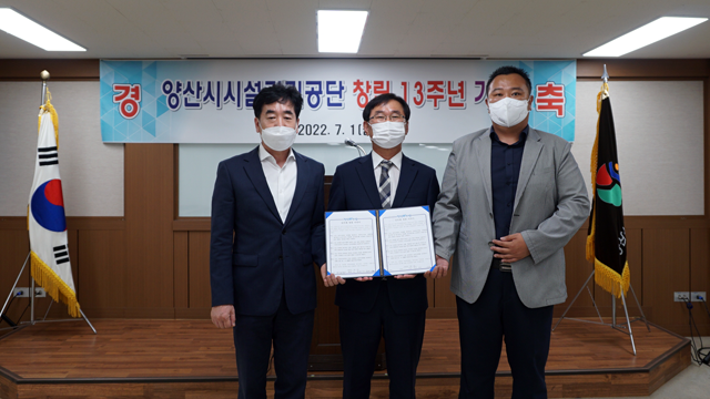 공단 창립 13주년을 맞아 이사장, 본부장, 사업부장 및 각 사업팀 팀장과 직원들이 참여한 가운데 창립기념 행사를 실시하였습니다.