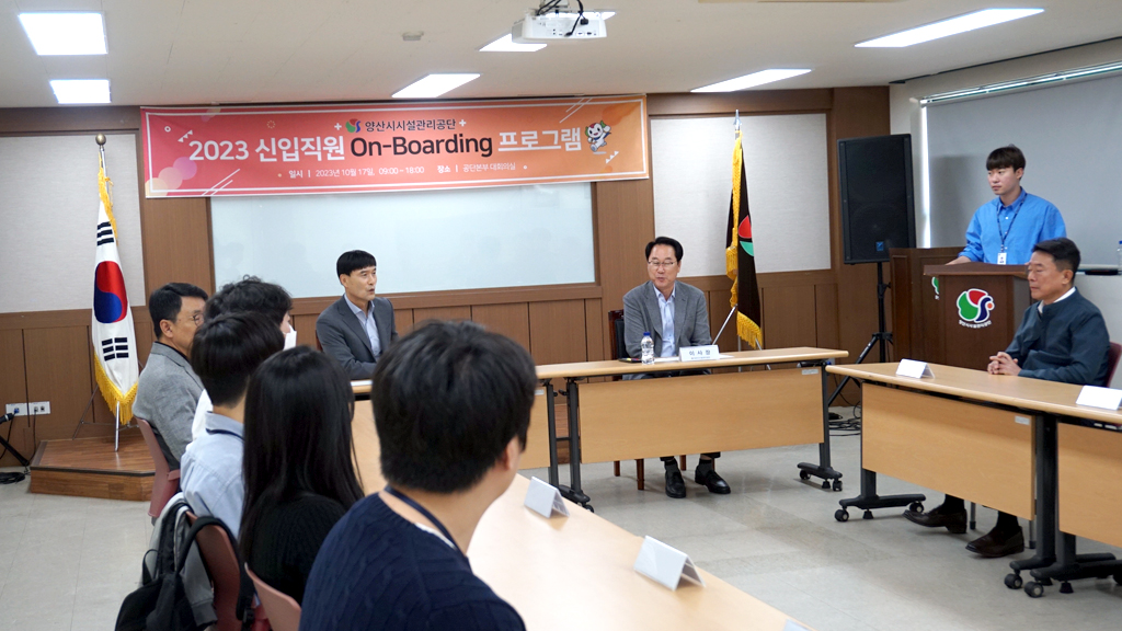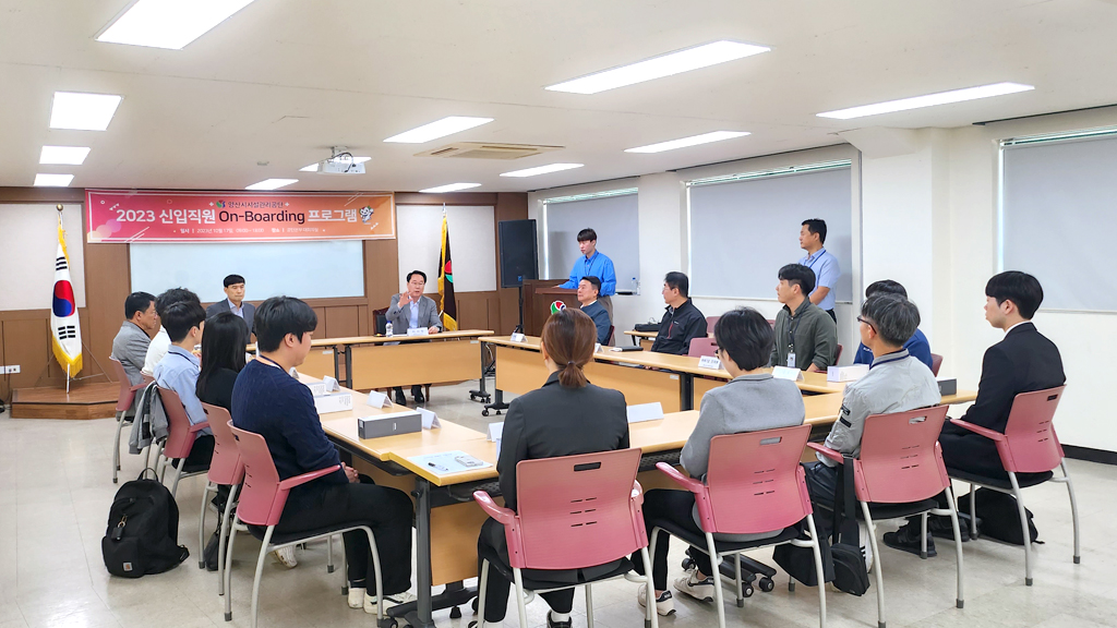 양산시시설관리공단은 지난 17일 공단본부 대회의실에서 10여명의 신규직원이 참석한 가운데 온보딩 프로그램을 실시하였습니다.